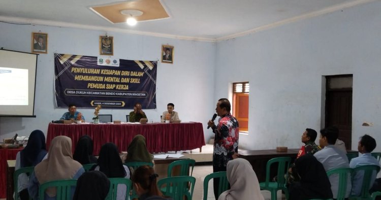 Magetan. - Kehadiran Babinsa (Bintara Pembina Desa) dan Bhabinkamtibmas (Bhayangkara Pembina Keamanan dan Ketertiban Masyarakat) dalam penyuluhan kesiapan diri, pembangunan mental, dan keterampilan bagi pemuda siap kerja merupakan bentuk sinergitas TNI-Polri dalam mendukung program pemerintah daerah dan nasional bertempat di Aula Balai Desa Dukuh Kec. Bendo, Kab. Magetan. Jumat (05/12/2025)