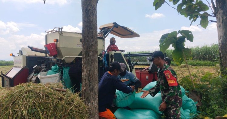 Magetan, - Babinsa Koramil 13 Bendo Kodim 0804/ Magetan Sertu Jafar Sodik, melakukan pendampingan panen padi menggunakan alat modern berupa traktor pemanen padi (Combine Harvester). Kegiatan ini berlangsung di lahan milik Bp Bagus Setiawan Rt 003/ Rw 002 Desa Lemahbang, Kecamatan Bendo, Kabupaten Magetan pada Rabu (04/02/2026).
