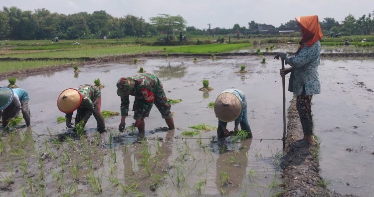 Magetan.- Babinsa Kelurahan Lembeyan Kulon, Koptu Purwanto, melaksanakan pendampingan kepada warga binaannya dengan membantu langsung proses penanaman padi di areal persawahan milik warga. Kegiatan tersebut merupakan wujud kepedulian TNI AD dalam mendukung ketahanan pangan serta meningkatkan kesejahteraan masyarakat, khususnya para petani di wilayah binaan. Selasa (23/12/2025)