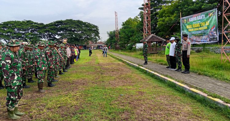 Magetan – Dalam rangka memperingati Hari Juang Kartika TNI AD, Babinsa Kodim 0804/Magetan yang berada di wilayah Koramil 0804/06 Maospati bersama Forkopimca Maospati dan masyarakat melaksanakan kegiatan Karya Bhakti pembersihan drainase di area lapangan Desa Gulun, Kecamatan Maospati, Kabupaten Magetan. Rabu (17/12/2025)