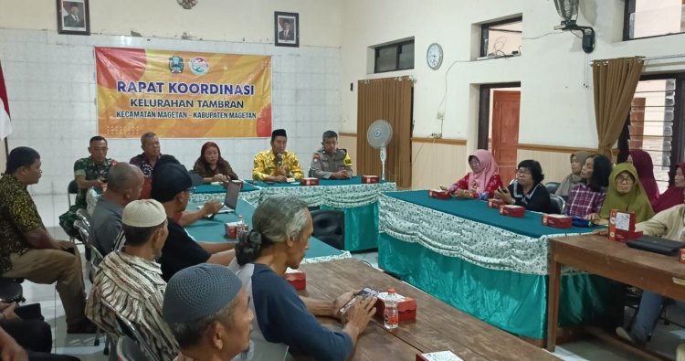 Magetan. - Babinsa kelurahan Tambran Koramil Tipe B 0804/01 Magetan jajaran Kodim 0804/Magetan Peltu Ari Himawan menghadiri pelaksanaan kegiatan Rapat Koordinasi Kel. Tambran bertempat di Balai Kelurahan Tambran, Kecamatan Magetan, Kabupaten Magetan. Jumat (05/12/2025)