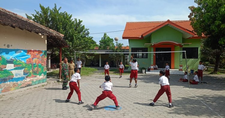 Babinsa Serma Sumadi melatih kemampuan olahrqga Voli siswa SDN Mangge 3 dengan penguasaan teknik dasar meliputi Servis, pasing, setter (pengumpan) spike (Smash) dan blok teknik ini merupakan kemampuan dasar agar pemain voli memiliki ketangkasan yang baik.