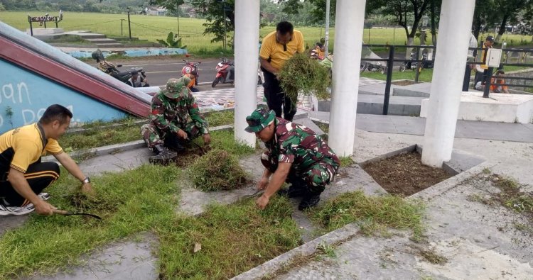 Magetan. - Danpos Kartoharjo Koramil Tipe B 0804/08 Barat Peltu Nanang B.S bersama Forkopimca Kartoharjo melakukan cipta kondisi Asri dengan sasaran fasilitas umum, Aliran Sungai, Parit dan seterusnya, gerakan ini agar di wilayah kabupaten Magetan khususnya di Desa teritorialnya menjadi bersih, nyaman dan Asri serta kondusif, Selasa (11/11/25)