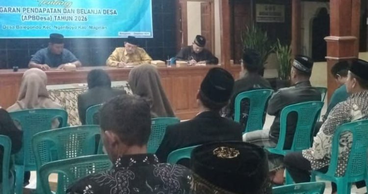 Magetan - Danposramil Ngariboyo Koramil 0804/01 Magetan Peltu Matsugan menghadiri pelaksanaan kegiatan musyawarah desa tentang Anggaran Pendapatan Desa P-APBDes Th 2026 Desa Balegondo di Balai Desa Balegondo Kecamatan Ngariboyo Kabupaten Magetan. Selasa (30/12/2025)