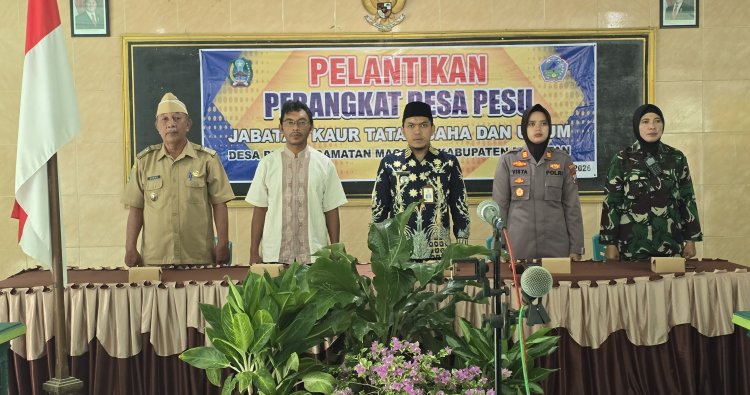Magetan. – Pemerintah Desa Pesu Kecamatan maospati Kabupaten magetan menyelenggarakan acara pengambilan sumpah jabatan dan pelantikan perangkat desa Pesu jabatan kaur tatata usaha dan umum yang Bertempat di Balai Desa Pesu kecamatan Maospati kabupaten Magetan.Sabtu ( 24/01/2026 )