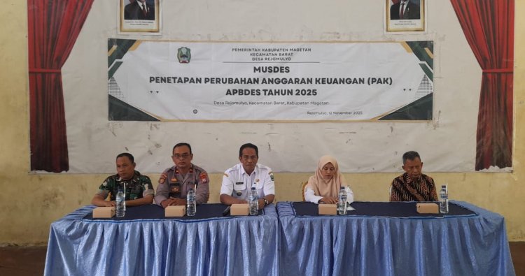 Magetan - Dalam upaya mendukung pembangunan di Desa, Danramil Tipe B 0804/08 Barat Kapten Inf Denni Erwanto menghadiri Rapat Musyawarah Desa (Musdes) bertempat di Balai Desa. Rapat ini bertujuan untuk menetapkan Anggaran Pendapatan dan Belanja Desa (APBDes) Desa Rejomulyo Kecamatan Barat, Kabupaten Magetan. Jumat (14/11/25)