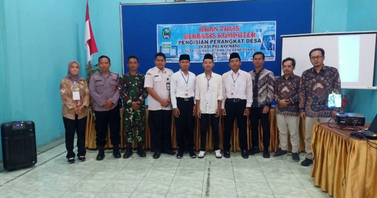 Magetan. - Dorong perkembangan era digital, Danramil 0804/10 Kawedanan Kapten Inf Risa Mushin Setyo Utomo menghadiri ujian tulis berbasis komputer pengisian perangkat kasi pelayanan Desa Ngunut, bertempat di balai Desa Ngunut, Kecamatan Kawedanan, Kabupaten Magetan. Jumat (25/04/2026).