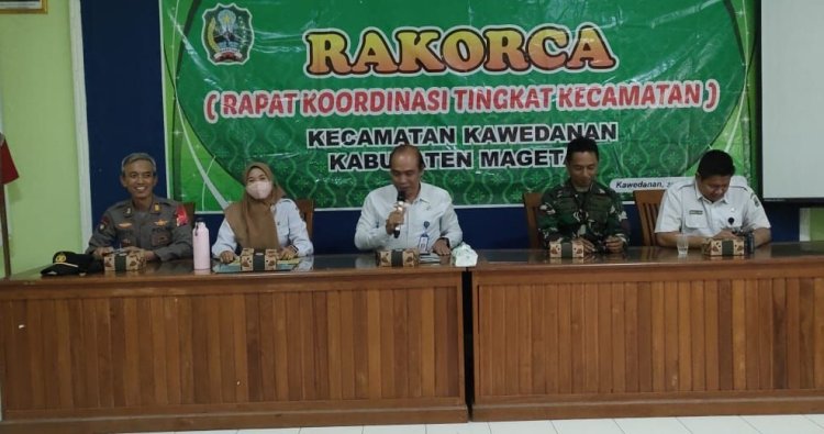 Magetan. – Wujudkan hubungan yang harmonis antara TNI dan unsur Pemerintah tingkat Kecamatan Danramil 0804/10 Kawedanan Kodim 0804/Magetan Kapten Inf Riza MSU menghadiri rapat kordinasi forkopimcam yang dilaksanakan di aula Kantor Kecamatan Kawedanan Kabupaten Magetan, Senin (29/12/2025).