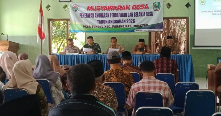 Magetan - Kodim 0804/Magetan Danramil 0894/04 Parang Kapten Inf Joko Priyadi menghadiri undangan rapat Musyawarah Desa (Musdes) dalam rangka Penyepakatan dan Penetapan Pemerintahan Desa (RKPDesa) Tahun 2026 bertempat di Balai Desa Sundul Kecamatan Parang Kabupaten Magetan, Selasa (30/12/2025).