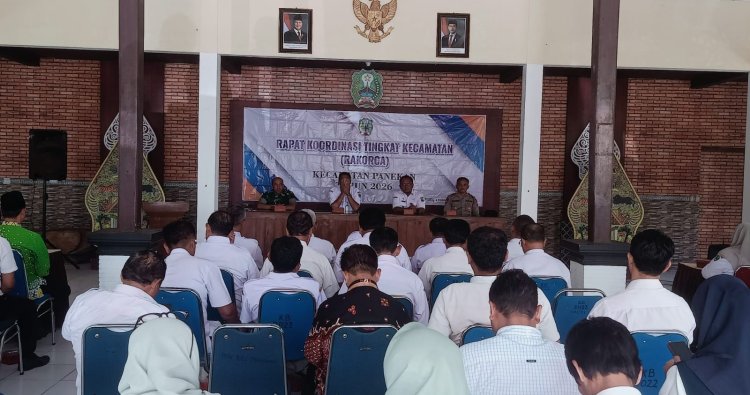 Panekan-Kecamatan Panekan melaksanakan Rapat Koordinasi Tingkat Kecamatan Tahun 2026 di Pendopo Kecamatan Panekan dengan dihadiri sekitar 60 peserta lintas instansi. Kegiatan ini dipimpin Camat Panekan Ir. Muh. Salim dan dihadiri unsur Forkopimcam, kepala desa, UPT, serta tokoh masyarakat. Camat Panekan menyampaikan, “Rakor ini bertujuan menyatukan langkah dan meningkatkan sinergi seluruh elemen dalam mendukung program pemerintah di wilayah Panekan, ” ujar Ir. Muh. Salim.