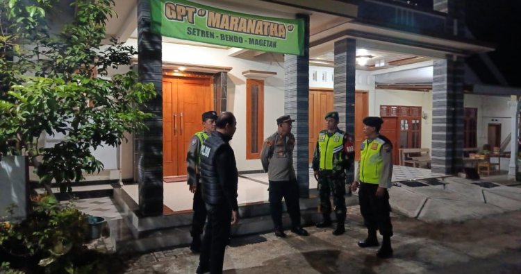 Magetan. – Koramil 13 Bendo Kodim 0804 Magetan bersama Polsek Bendo melaksanakan pengamanan ibadah Malam Jum'at Agung di gereja Pante, Costa Tarbel Nakel yang berada di Desa Setren Rt 029 / Rw 006 Kecamatan Bendo , Kabupaten Magetan, Kamis malam Jum'at (01/01/2026).