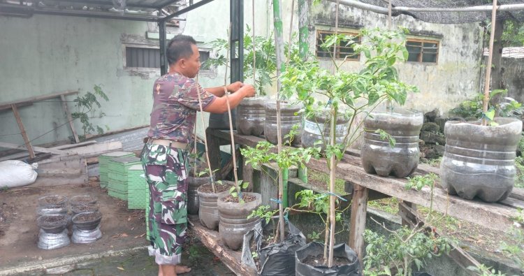 Magetan. – Babinsa Koramil 0804/10 Kawedanan jajaran Kodim 0804/Magetan terus melaksanakan rutinitas perawatan dan pemeliharaan tanaman terutama seperti cabe, ubi kayu dan Terong, dengan memanfaatkan lahan kosong serta menggunakan media tanam Polybag di lingkungan Makoramil 0804/10 Kawedanan, Kecamatan Kawedanan Kabupaten Magetan. Kamis (23/10/2025)