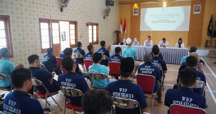 MAGETAN — Rutan Kelas IIB Magetan Kantor Wilayah Direktorat Jenderal Pemasyarakatan Jawa Timur melaksanakan kegiatan Penutupan Rehabilitasi Pemasyarakatan Tahun 2025 pada Rabu (10/12/2025). Kegiatan yang berlangsung di Aula Rutan ini diikuti oleh 28 Warga Binaan Pemasyarakatan (WBP) peserta Rehabilitasi Gelombang III.