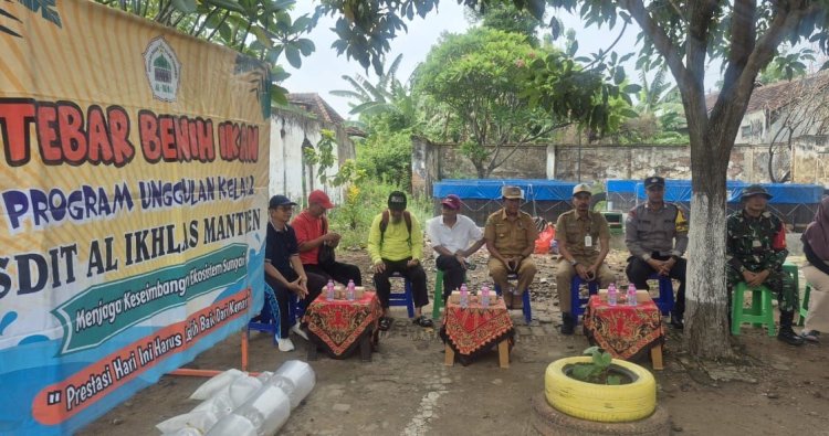 Magetan. - Siswa SDIT Mantren kelas dua melakukan kegiatan tabur benih ikan, ini dilakukan rutin setiap tahunnya dalam rangka melestarikan habitat sungai/kanal Kecamatan Karas Kabupaten Magetan. Kamis (23/10/2025)