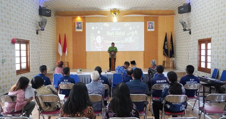 MAGETAN - Rutan Kelas IIB Magetan, Kantor Wilayah Direktorat Jenderal Pemasyarakatan Jawa Timur, menggelar Perayaan Natal 2025 dan Tahun Baru 2026 bagi Warga Binaan Pemasyarakatan (WBP) yang beragama Kristen, Rabu (17/12/2025). Kegiatan tersebut berlangsung dengan khidmat di Aula Rutan.