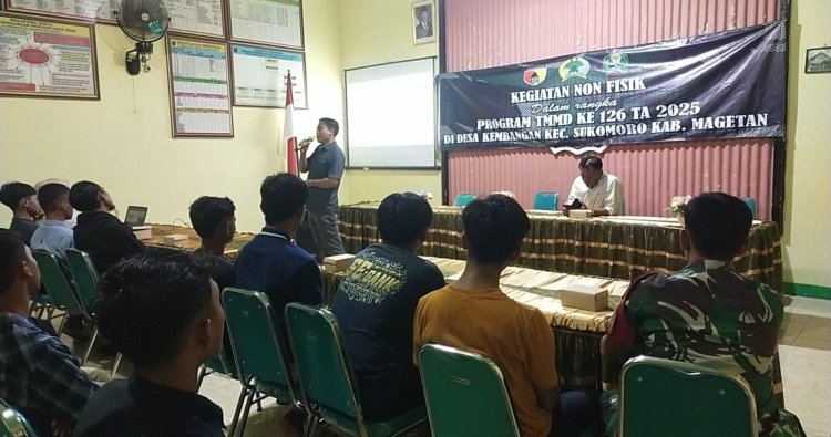 Magetan.  – Satgas TNI Manunggal Membangun Desa (TMMD) ke-126 Kodim 0804/Magetan terus menunjukkan kepeduliannya terhadap pembangunan sumber daya manusia di wilayah Desa Kembangan, Kecamatan Sukomoro. Kali ini, Satgas TMMD bekerja sama dengan Polres Magetan menggelar penyuluhan tentang bahaya narkoba bagi generasi muda, Selasa malam (21/10/2025).