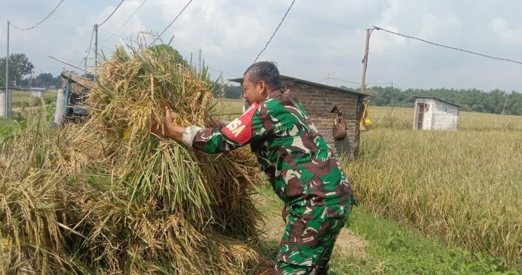 Magetan. - Sukseskan Ketahanan Pangan, Babinsa Koramil Tipe B 0804/08 Barat Serka Daryanto membantu petani memanen padi sebagai wujud dukungan TNI AD dalam mensukseskan program ketahanan pangan nasional dan mewujudkan swasembada pangan. Kegiatan ini terus dilakukan secara rutin diberbagai wilayah Indonesia sebagai bentuk kemanunggalan TNI dengan rakyat, Senin (20/04/26)