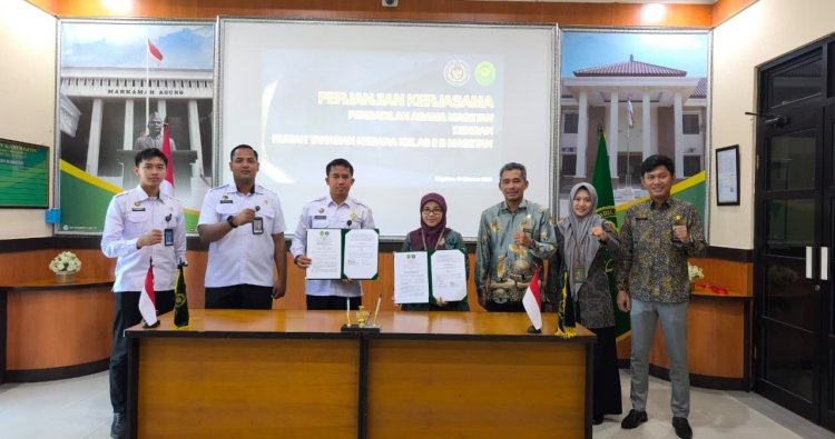 MAGETAN – Rumah Tahanan Negara Kelas IIB Magetan menjalin perjanjian kerja sama dengan Pengadilan Agama Magetan. Penandatanganan perjanjian dilakukan oleh Kepala Rutan Magetan, Ari Rahmanto, bersama Ketua Pengadilan Agama Magetan, Hermin Sriwulan, bertempat di Kantor Pengadilan Agama Magetan, Kamis (16/10/2025).