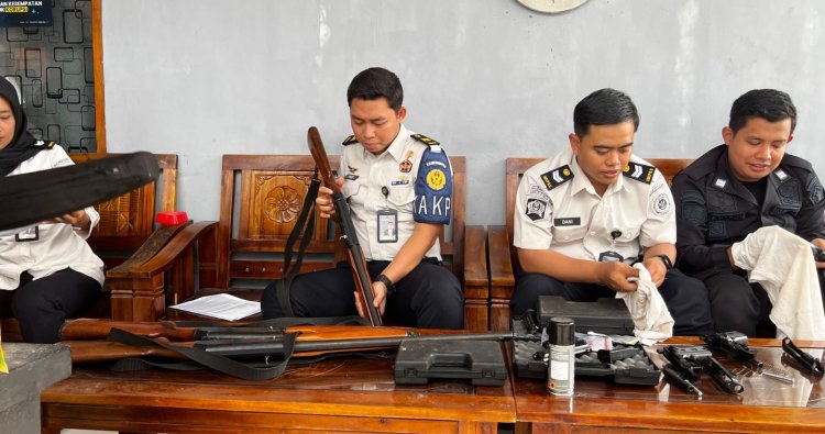 MAGETAN – Rumah Tahanan Negara Kelas IIB Magetan, Kantor Wilayah Direktorat Jenderal Pemasyarakatan Jawa Timur, melaksanakan kegiatan perawatan berkala senjata api dinas pada Kamis (5/2). Kegiatan ini merupakan bagian dari pengelolaan Barang Milik Negara (BMN) sekaligus upaya penerapan standar pengamanan dan perawatan sarana pengamanan.
